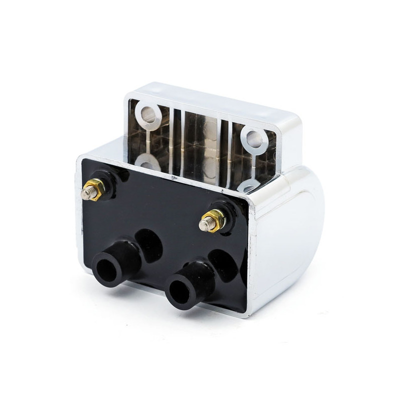 Bobine 5 ohms , chromée, pour tout système d'allumage qui demande une résistance de 5ohm type rupteurs, Dyna S, ou équivalent.