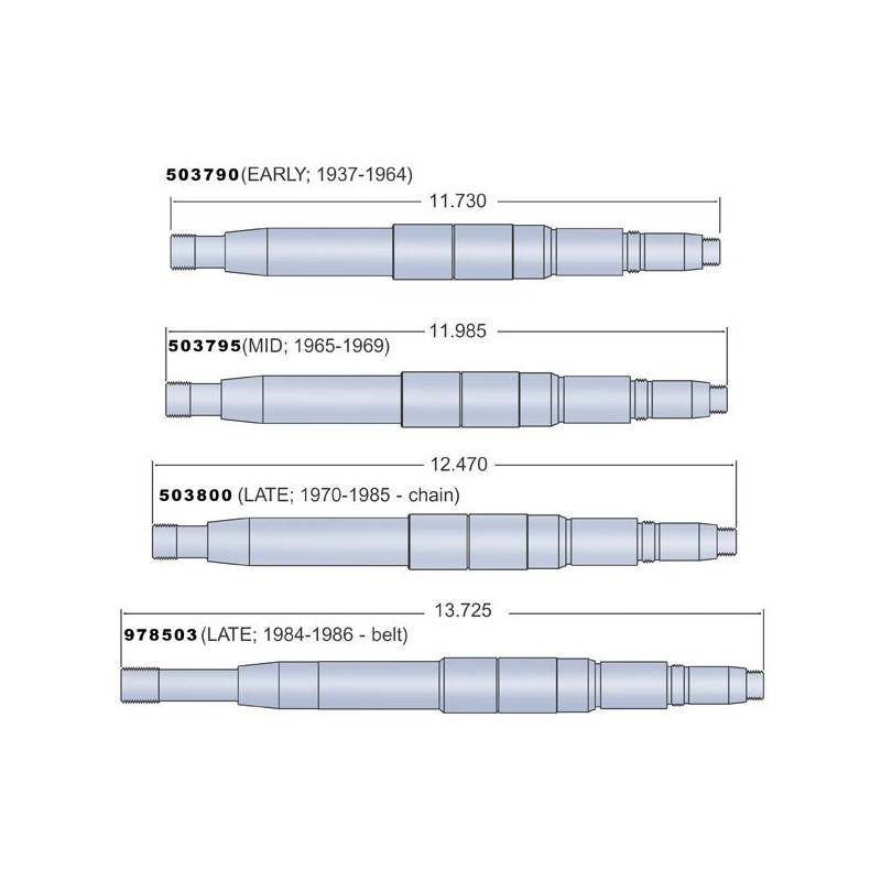 Arbre primaire pour toutes les boites Pan ou Shovel de de 37 à 84. Long. 31,5cm