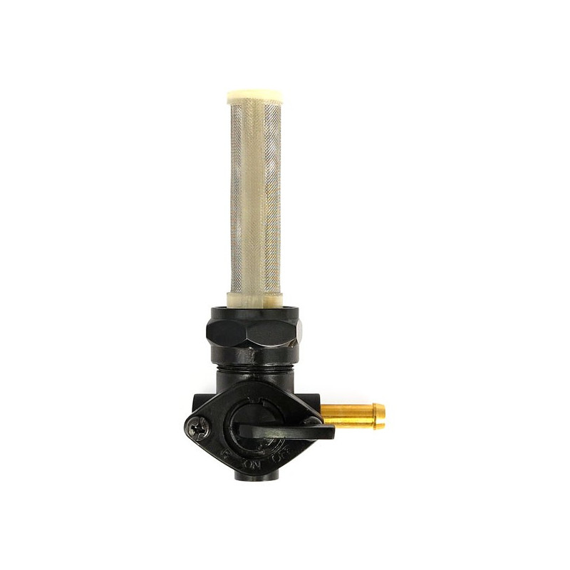 Robinet d"essence noir, sortie à Droite, pour tous modèles de réservoir a filletage extérieur en 22mm.