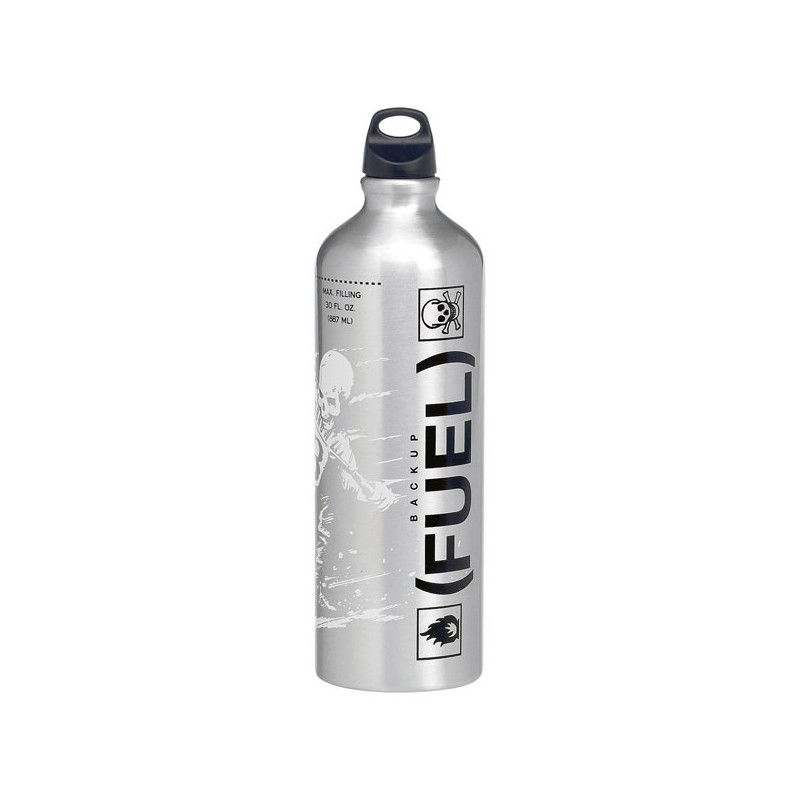 Bouteille de réserve d'essence, contenance 887ml. En aluminim extrudé, super léger, interieur laqué pour une grande durabilité, bouchon étanche.