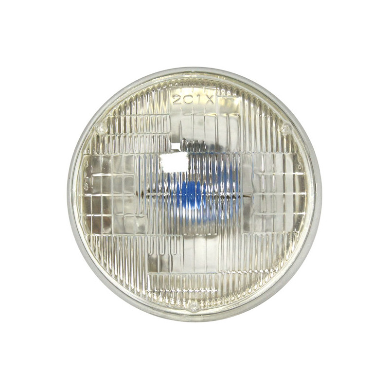 Optique de phare "Americaine" scellée 5 3/4" pouces de diam. à double filament (code, phare) 12V 35/50W pour Sportster, Dyna Ces optiques ne sont pas homologuées CE ( l'effet "bleu sur la photo es du a la prise de vue, en réel c'est neutre)