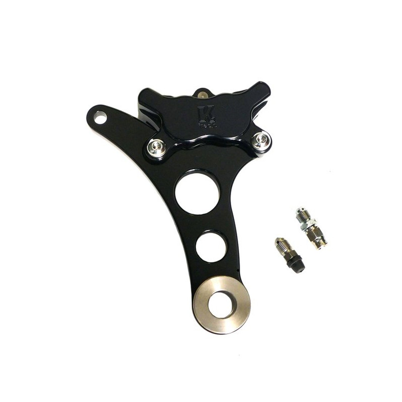 Etrier quatre pistons, pour axe de 3/4 et disque de 11,5", très beau look, très éficace et magnifique finition (existe aussi en alu)