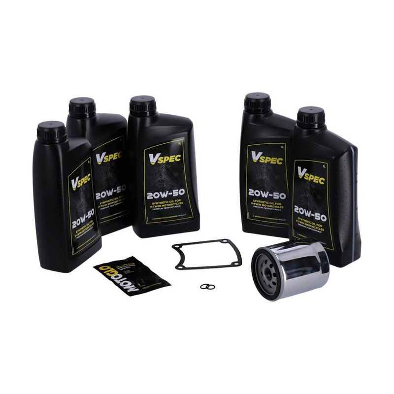 Huile SAE 20W50 3-1 Moteur synthetic / primaire / transmission, 63798-99A filtre à huile chromé, 11105 O-rings. Pour tous les modèles Touring de 99 à 2006