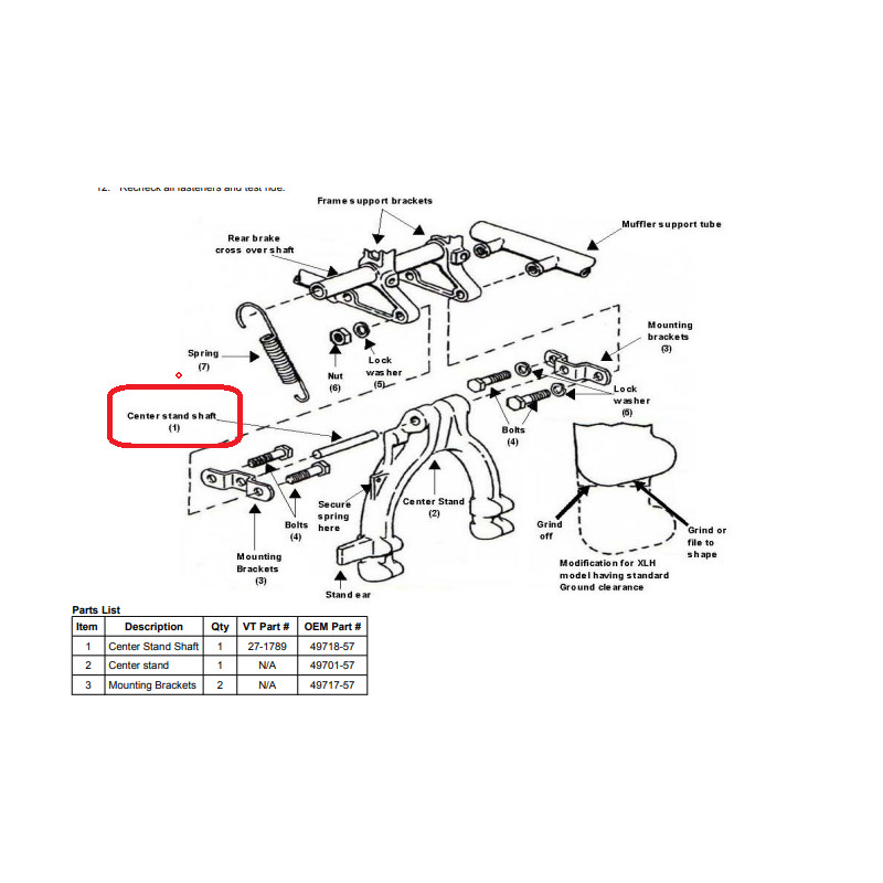 Axe de béquille Sportster K 52-56. Pièce d'origine HD 49718-57