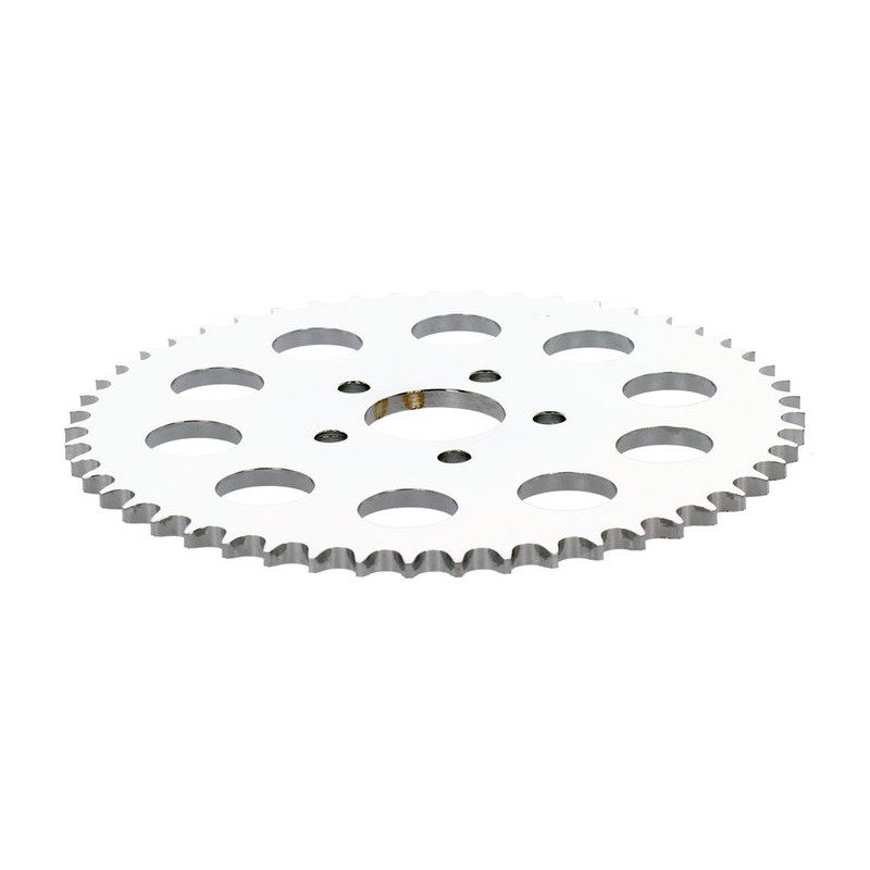 Couronne de transmition plate, 51 dents, finition chromée, diam. int.50 mm, pour tous modèles jusquà 2000.